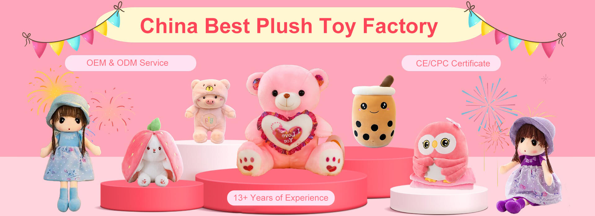 We are a professional stuffed animals manufacturer in China. Our stuffed animals are super popular among both children and adults. They have super cute cartoon designs and are made of soft plush and filled with pp cotton. Is the first choice gift for kids and girlfriends.