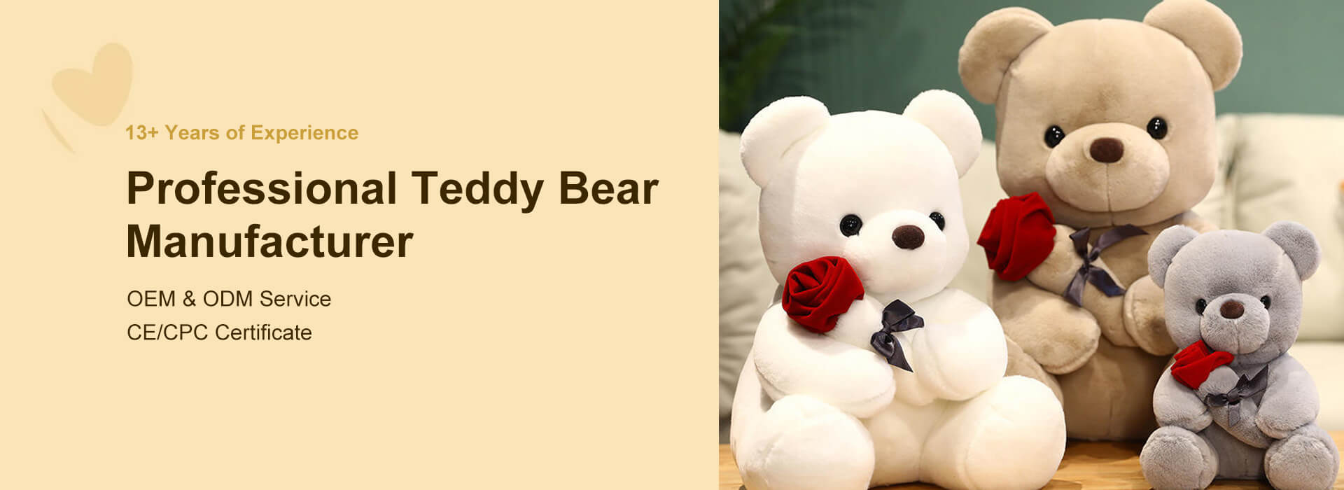 We are a professional teddy bears manufacturer in China. Our teddy bears are super popular among both children and adults. They are made of soft plush and filled with pp cotton. Is the first choice gift for kids and girlfriends.